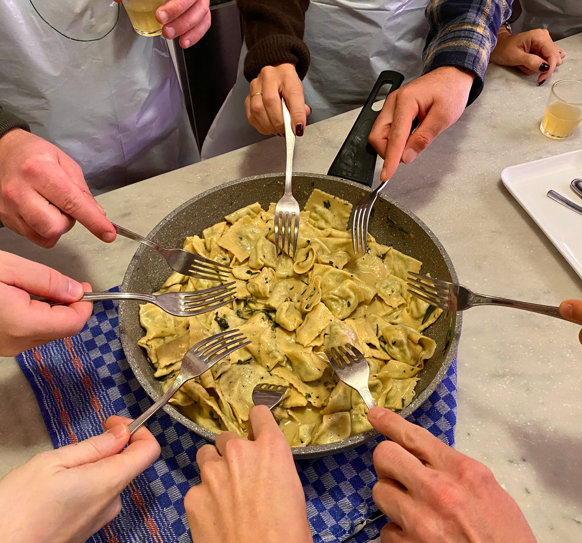 Durante il workshop, ti immergerai nella ricca storia della pasta in tutto il mondo e padroneggerai l'arte di creare a mano l'impasto della pasta fresca. Imparerai a modellarlo in una serie di forme di pasta allungata e ripiena. La sessione culmina in una festa comune in cui tutti assaporano i frutti del proprio lavoro, serviti in stile familiare al centro del tavolo, che ricorda le riunioni a casa di una nonna italiana.